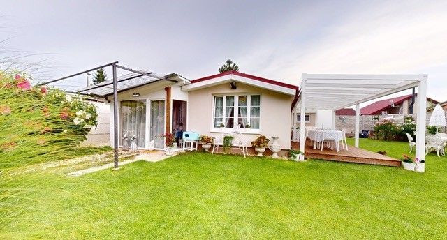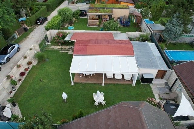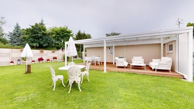 Pozemok s výmerou 350 m2 je starostlivo udržiavaný, vysadený okrasnými rastlinami a kríkmi, zatrávnený, od susedov a prístupovej cesty oddelený betónovým plotom.