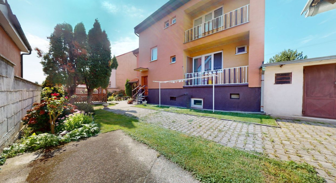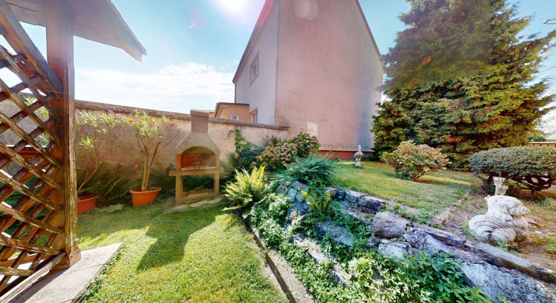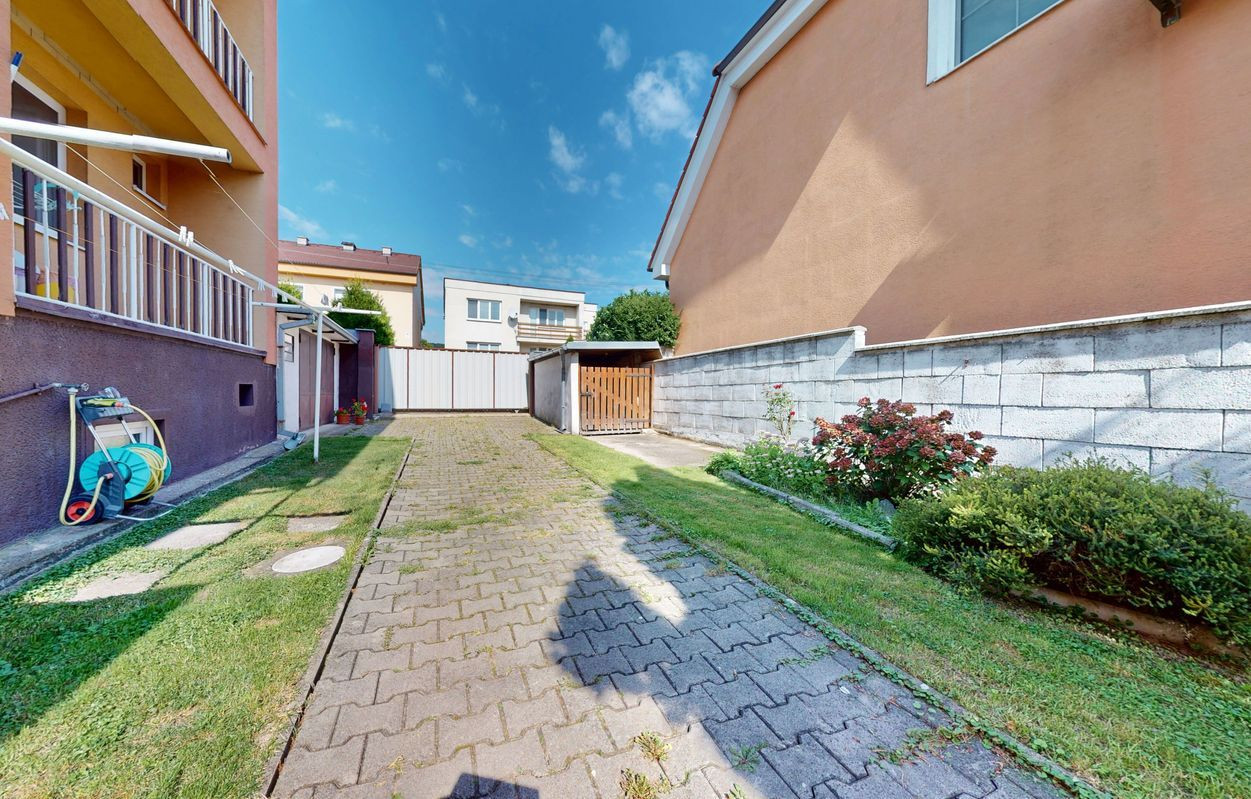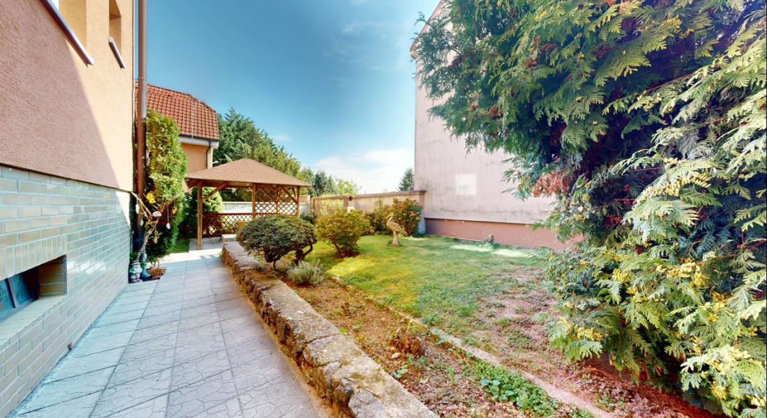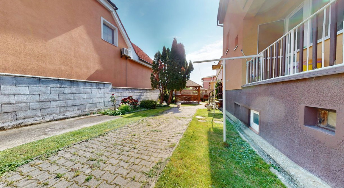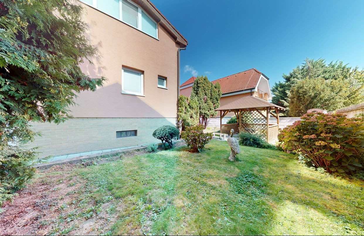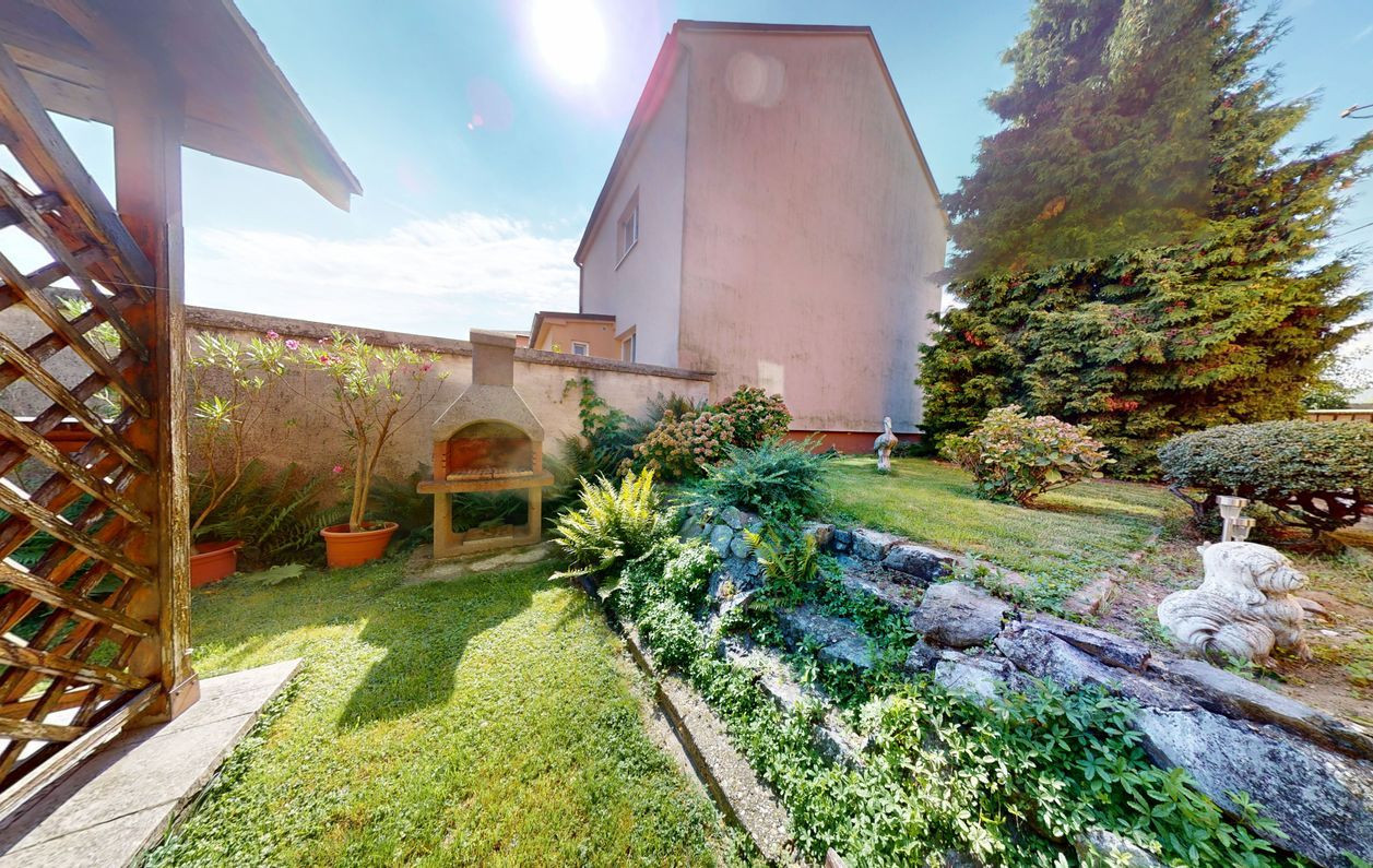 Dom je postavený na pozemku s výmerou 390 m². Na pozemku vysadené okrasné dreviny, kríky a kvety. Altánok dotvára peknú atmosféru na pozemku. Možnosť parkovať auto na pozemku.