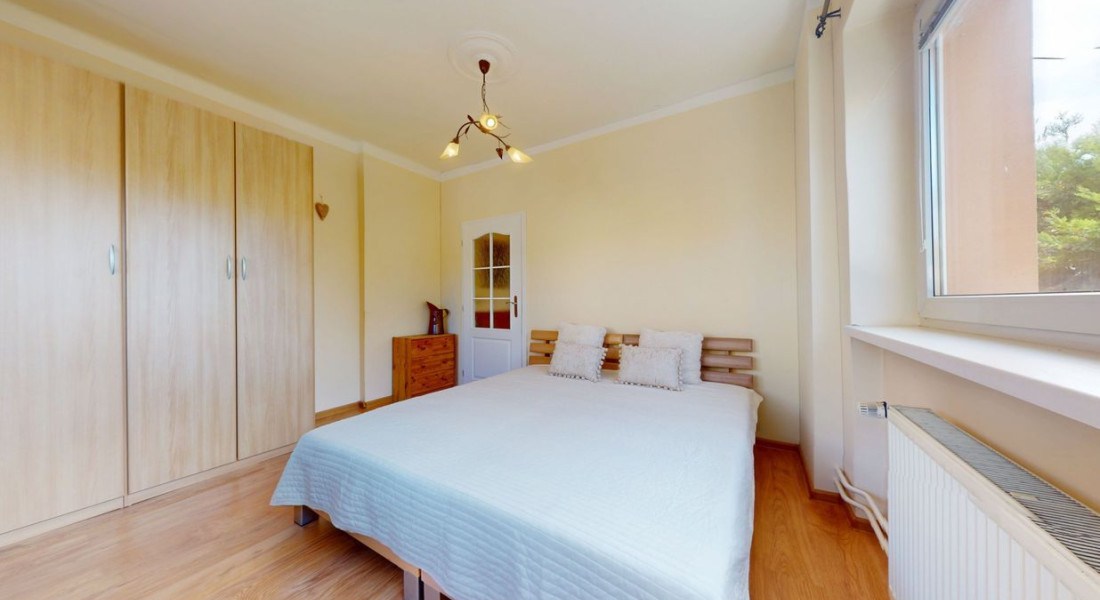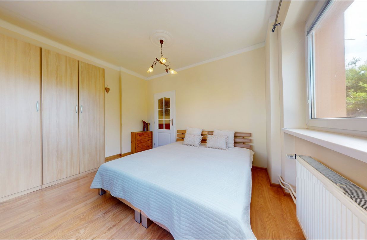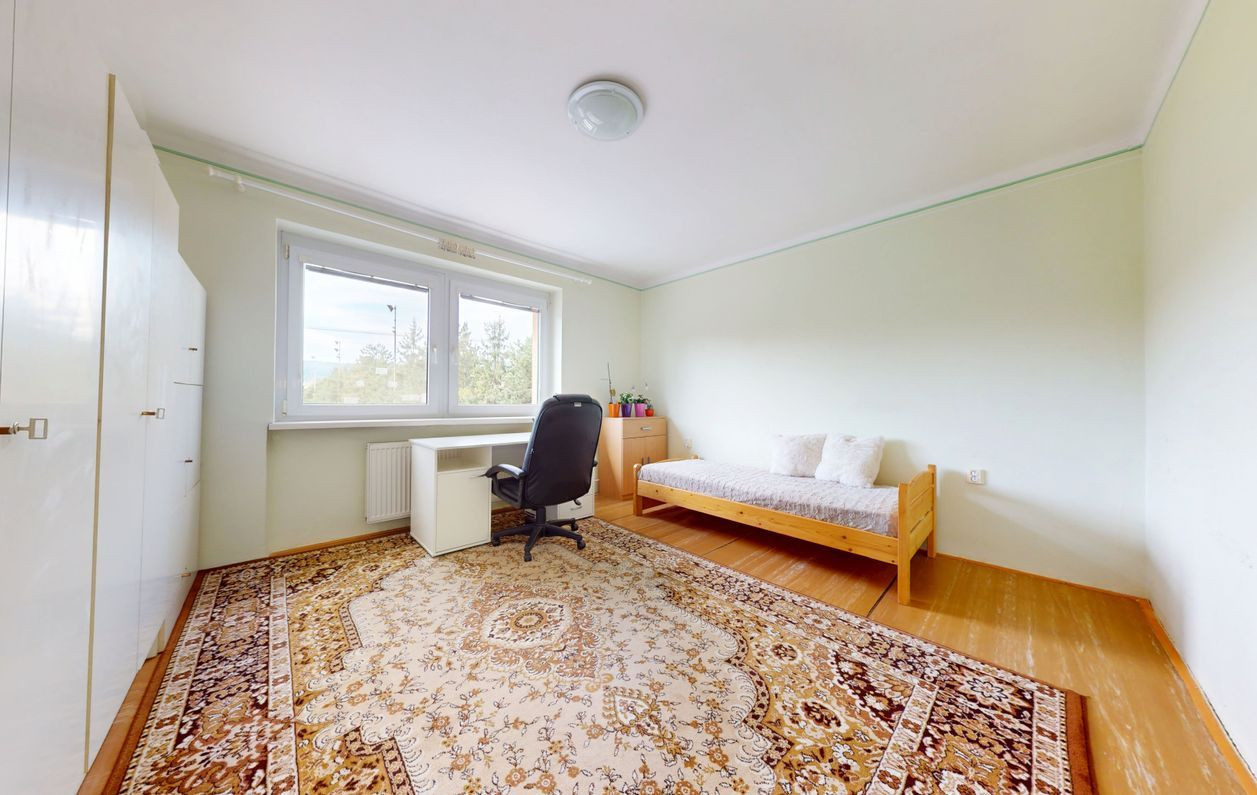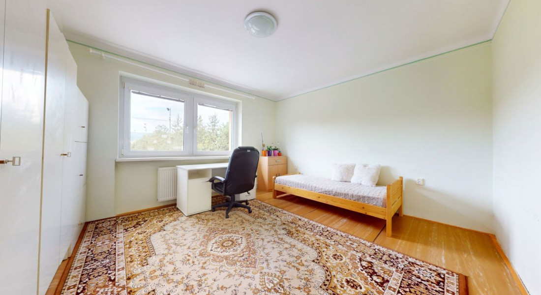 Prvé poschodie: 3 izby, balkón, zimná záhrada, kúpeľňa (umývadlo, vaňa, toaleta).
