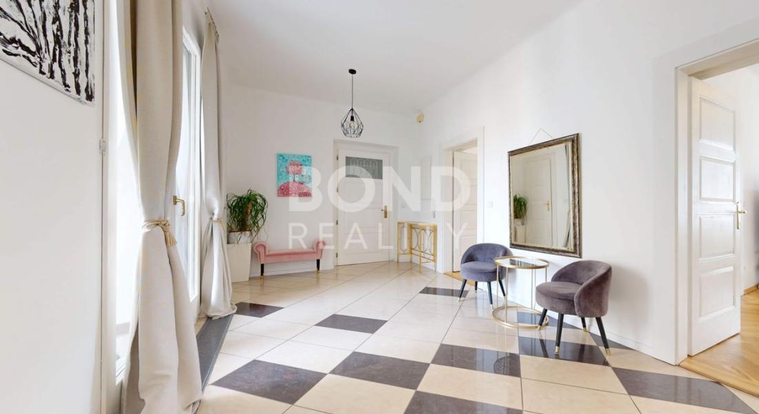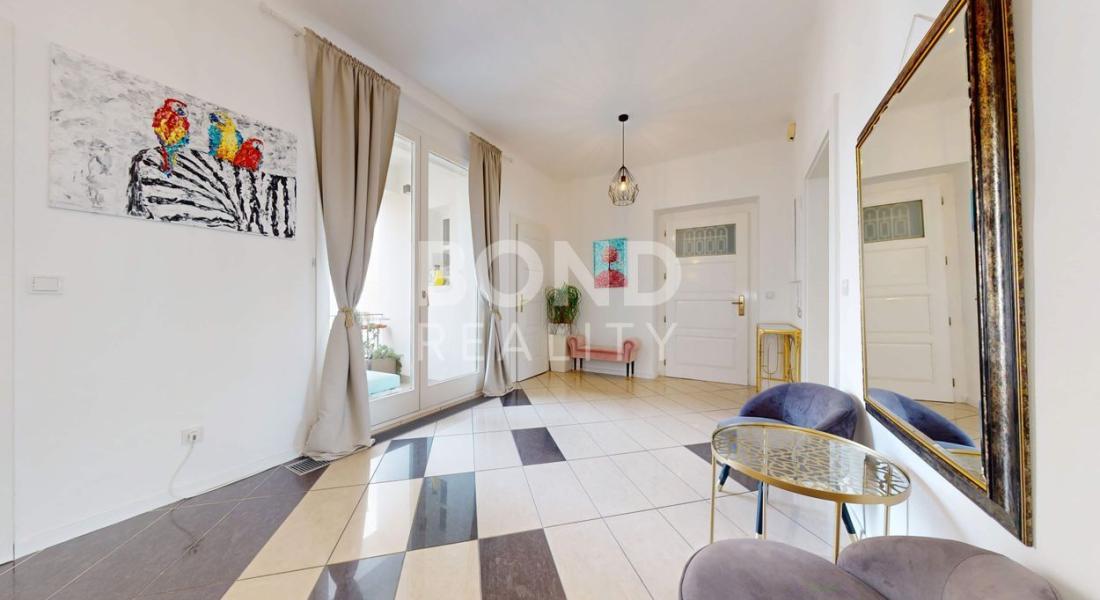 Dispozícia: priestranná obývacia izba, kuchyňa, dve veľké spálne, menšia pracovňa/hosťovská izba (0,5 izby), 2× kúpeľňa, pričom jedna s vaňou a druhá so sprchou a WC, vstupná hala